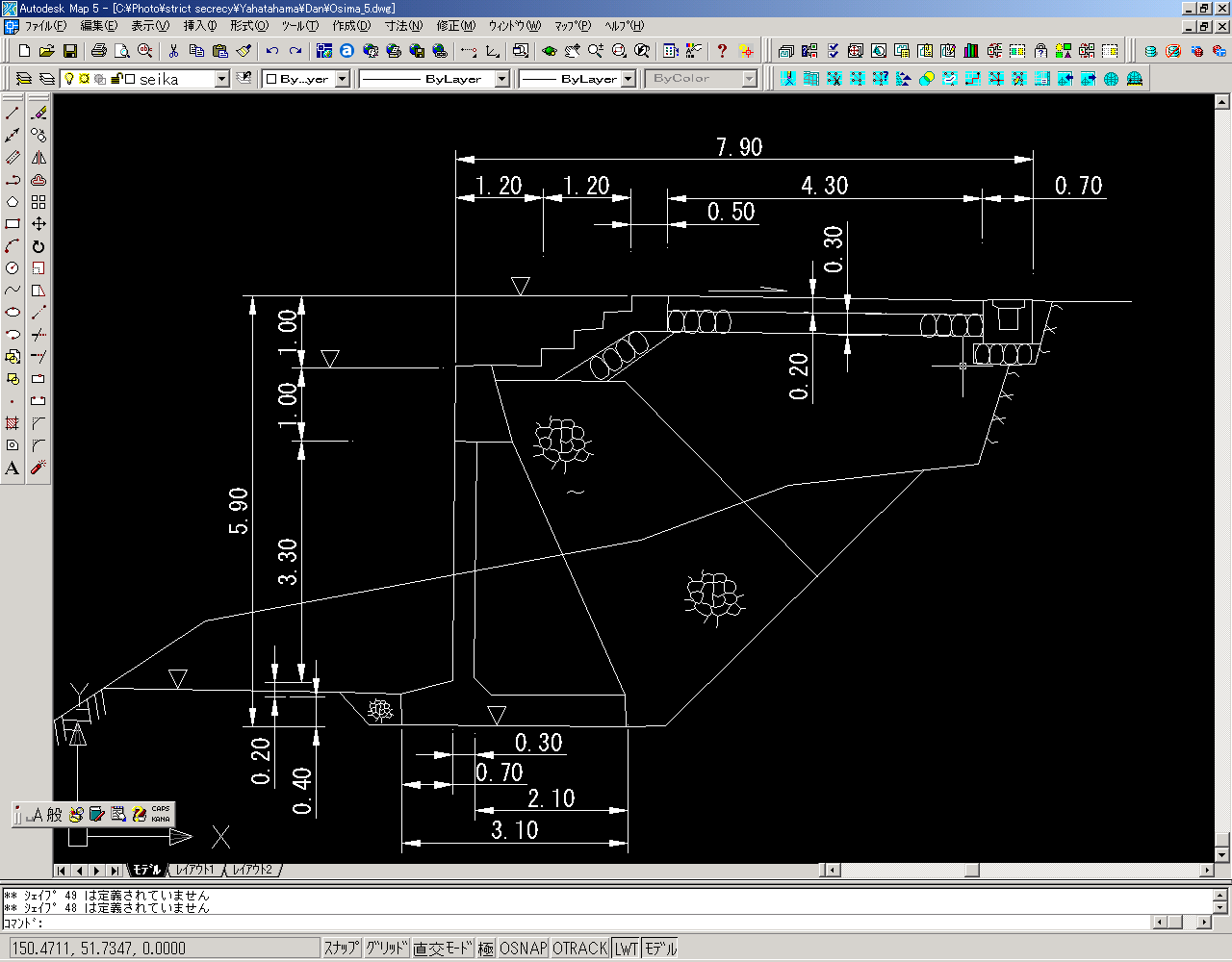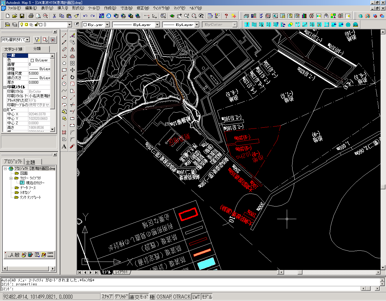 汎用CADの導入により、図面作成、図面編集、出力までの一括処理が可能となりました。さらに、GISソフトとのファイルの相互変換により、どちらで作成した図面でもそれぞれ反映・表示させることが可能です。これにより、CADで作成した図面を地理情報データとして登録可能であると共に、GISで統計処理した結果を、CAD図として作成することも可能となりました。 また、工作物、道路などの設計用図面(平面図・縦断図・横断面図)等を作成することはもちろん、構造物やその部品、工事用車両等の素材の作成も行っております。
